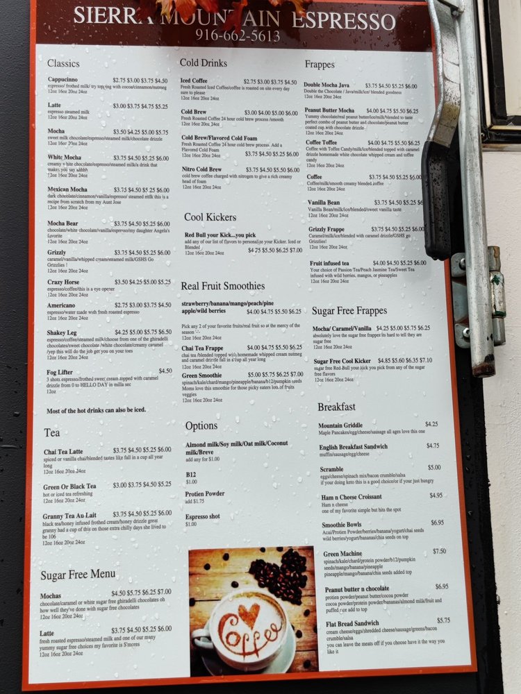 Sierra Mountain Espresso Drive Thru Coffee Roaster Menu
